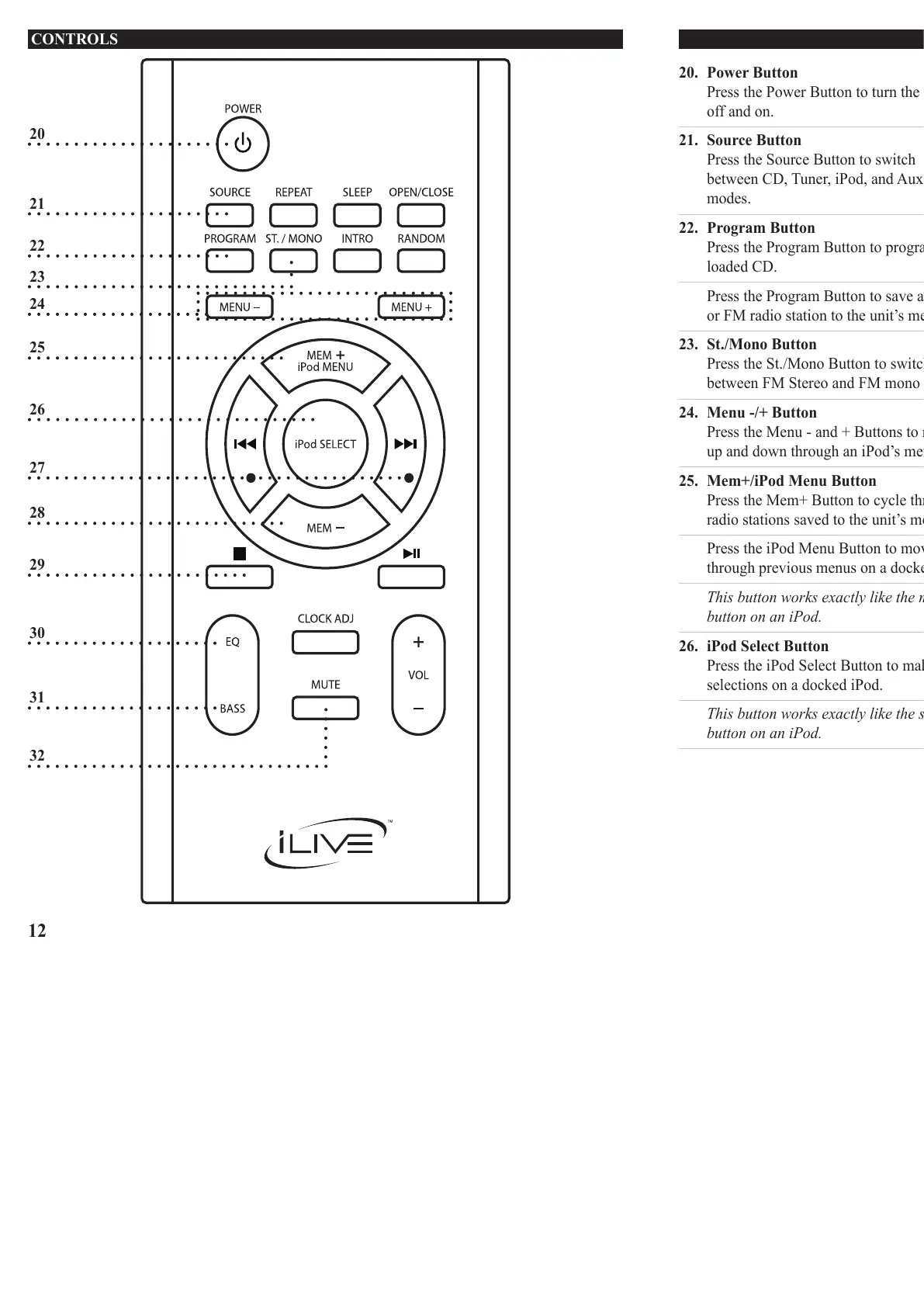 26. iPod Select Button