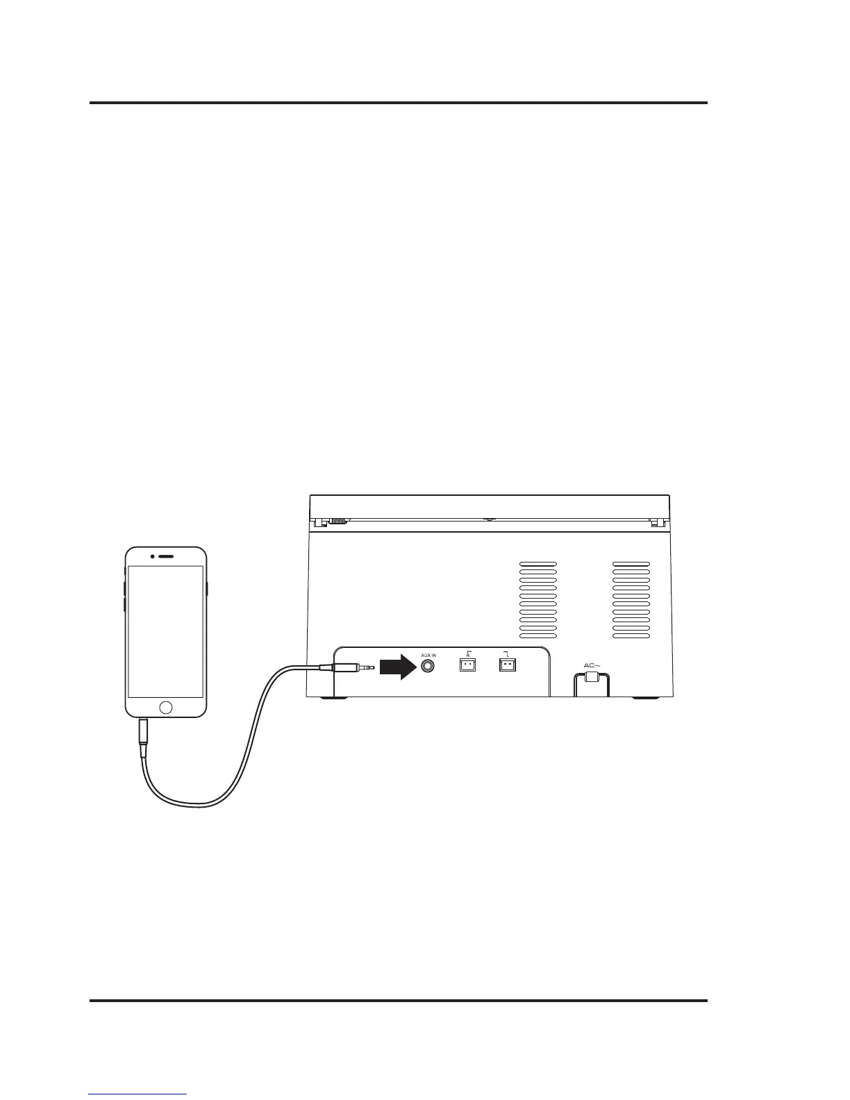 1. Plug a 3.5 mm audio input cable into the Aux In on the unit and the headphone jack on a smartphone or other