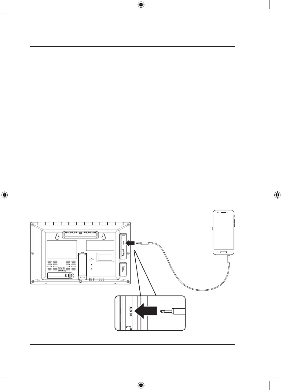 1. Plug a 3.5 mm audio input cable into the Aux In on the rear of the unit and the headphone jack on a