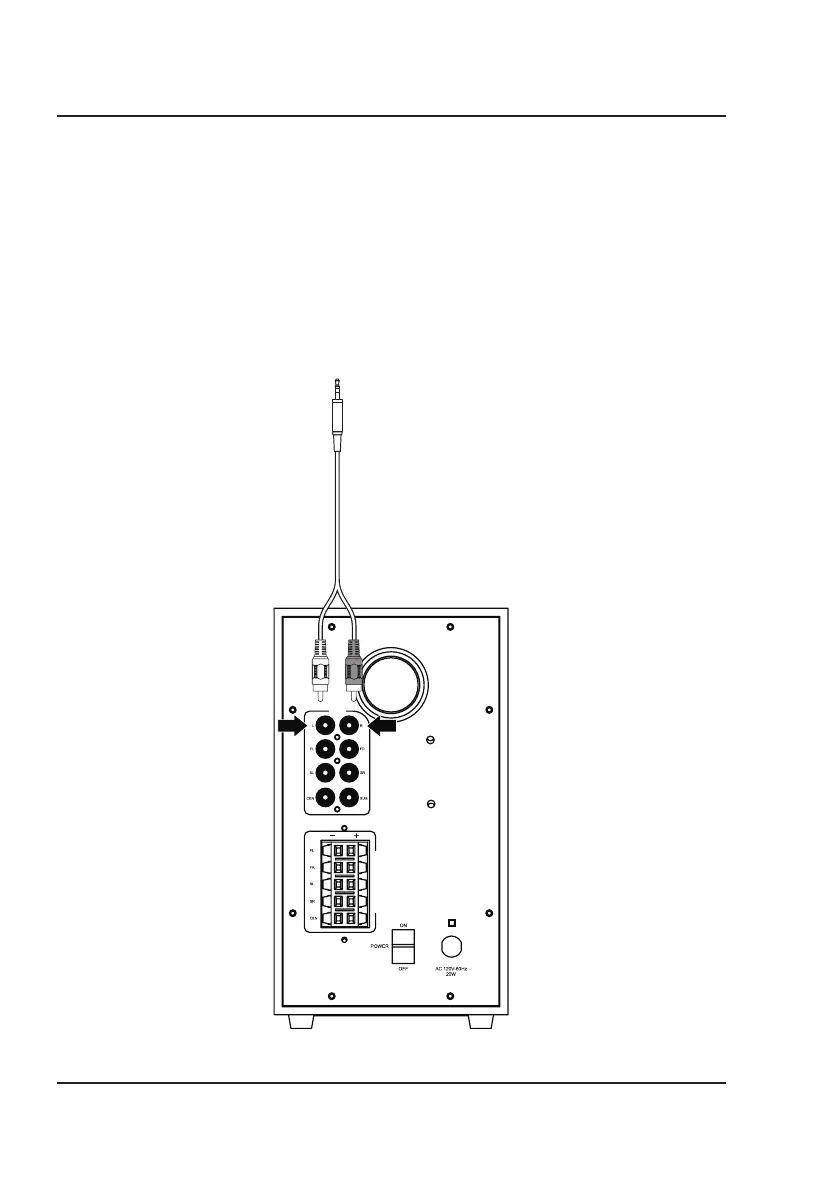 1. Connect the RCA stereo audio cable to the RCA Stereo Inputs on the subwoofer and the audio line outputs on