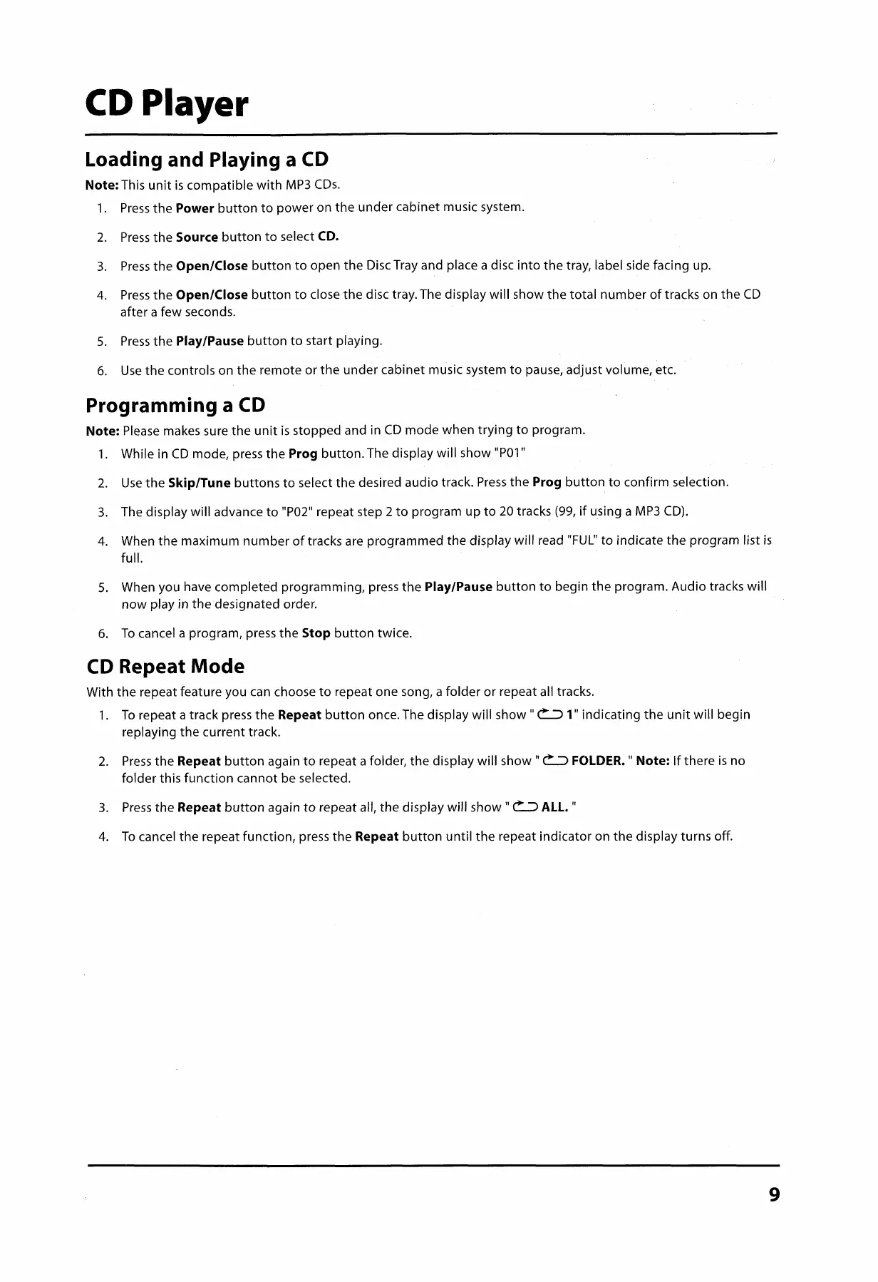 button to close the disc tray.The display will show the total number of tracks on the CD