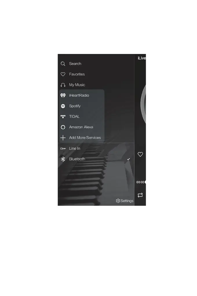 The iLive Wi-Fi app supports and can play songs from Spotify, iHeartRadio, and