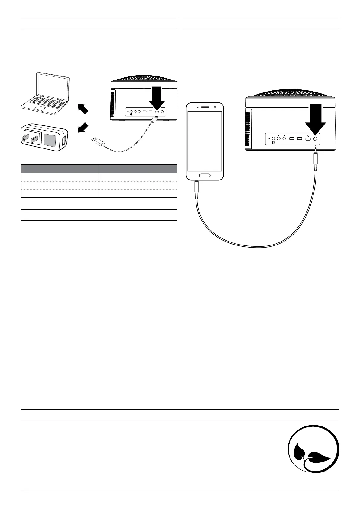 1. Connect a 3.5mm audio cable to the Aux In on the unit and the