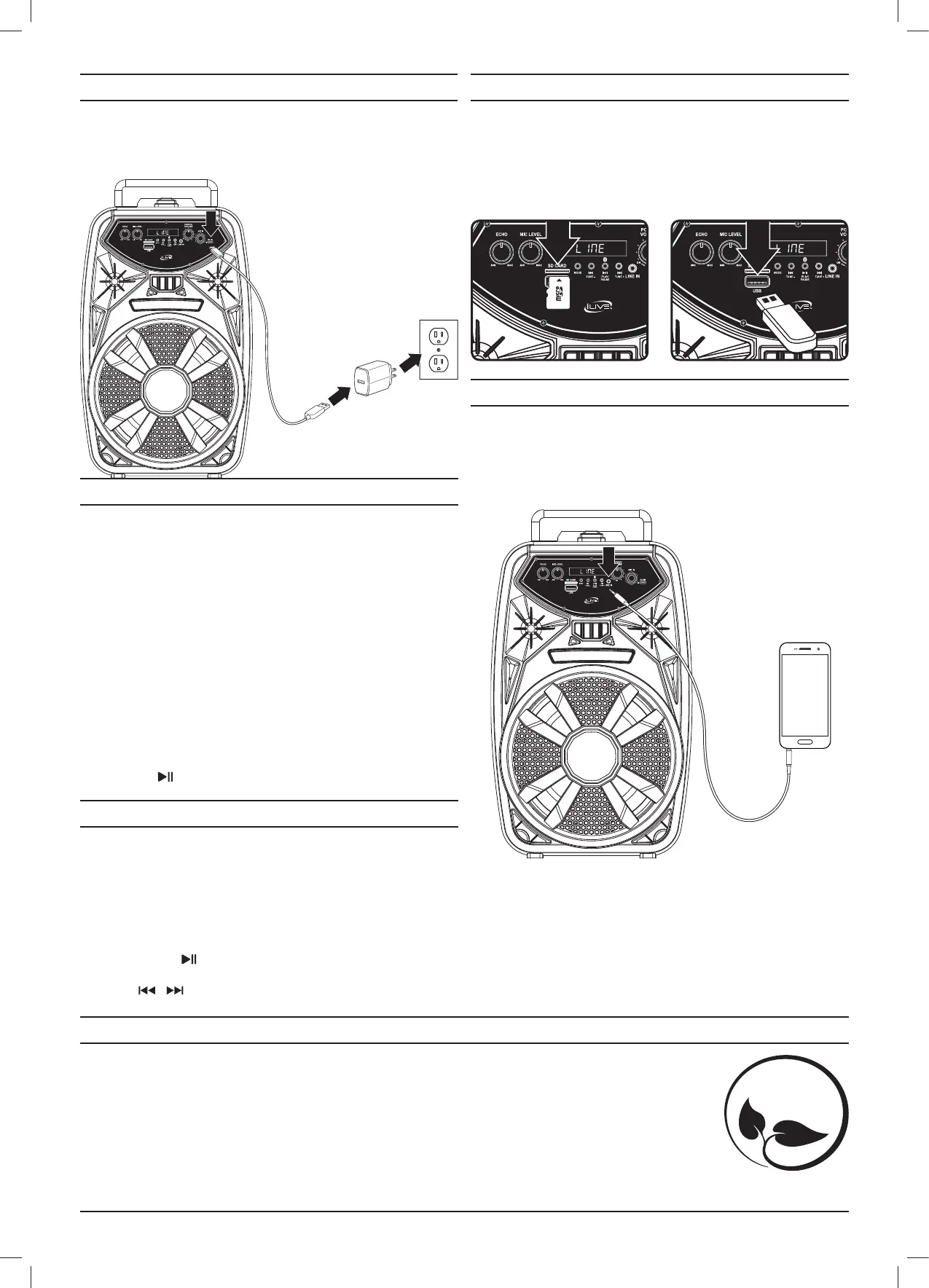2. The speaker will automatically switch to SD Card Mode (“SD” on the