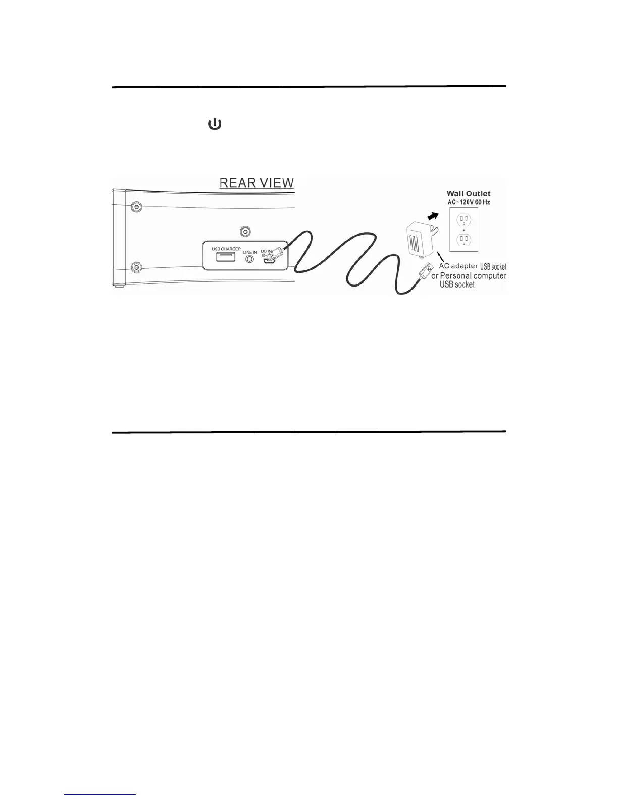 Plug the micro USB of the supplied cord into the DC IN USB jack at the back of the unit. Plug