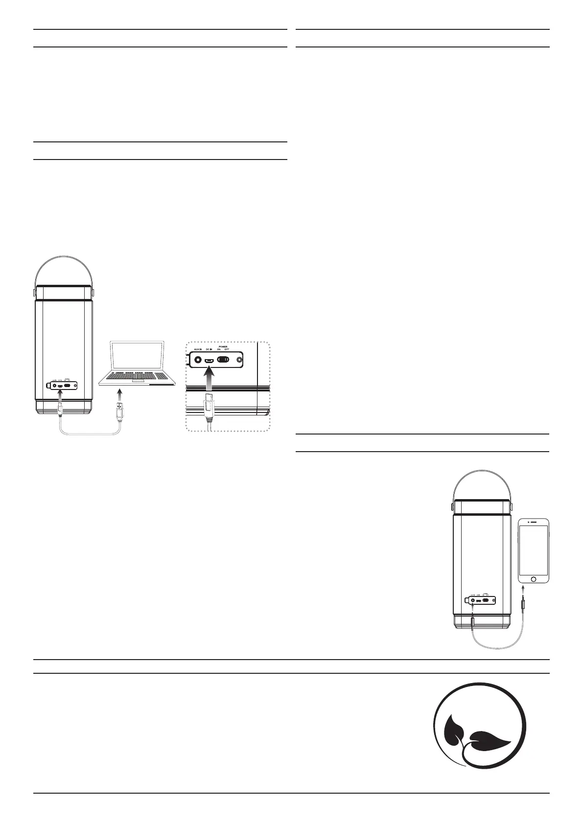 no harmful eects. It is not recommend to submerge this speaker in water for any