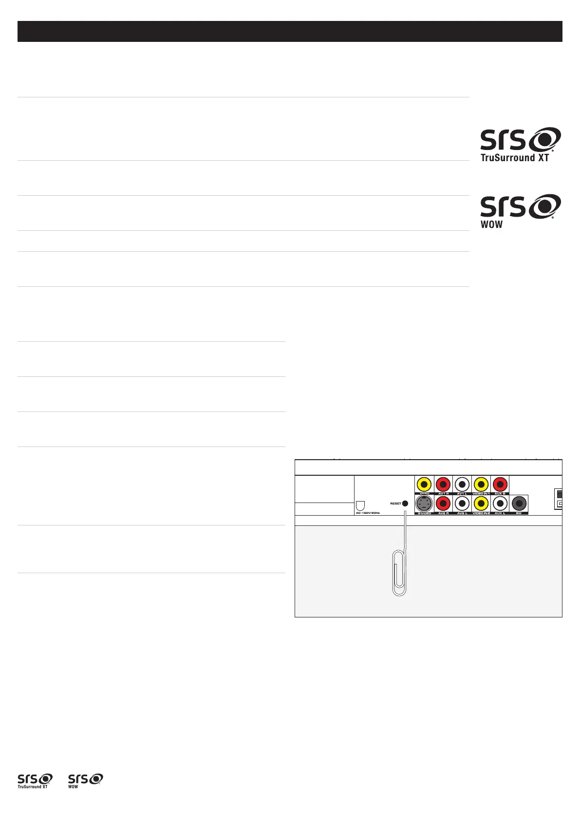 TruSurround XT and WOW technologies are incorporated under license from SRS Labs, Inc.