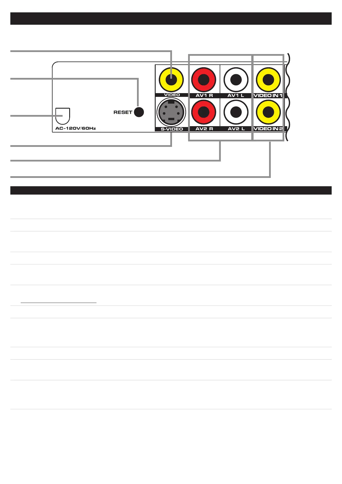 Use the Stereo Audio Inputs to connect an audio source to the bar speaker, such as a Television, or DVD Player.