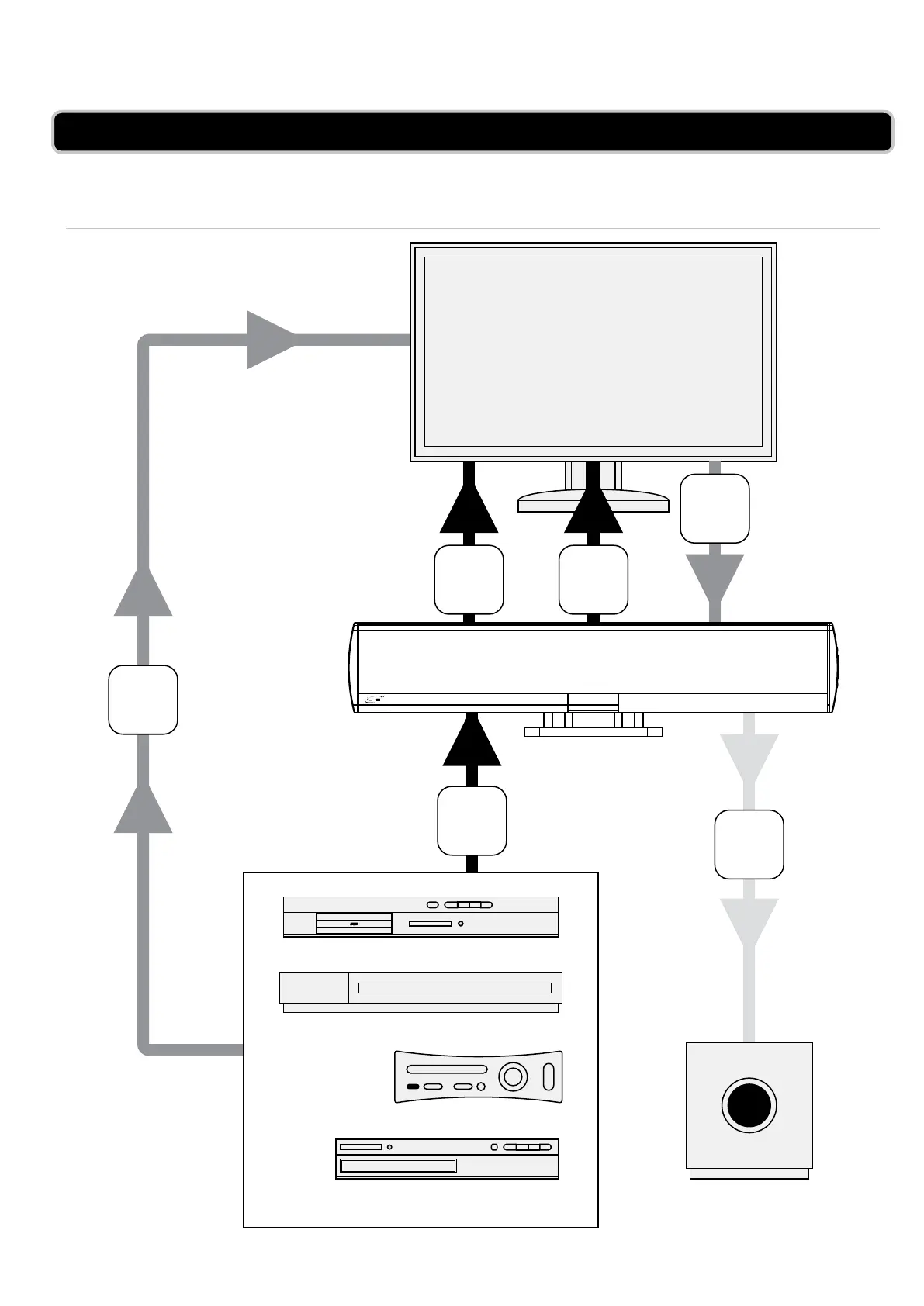 Below, you’ll see a basic ow chart of how you can connect your home entertainment devices to the bar speaker, and in turn how