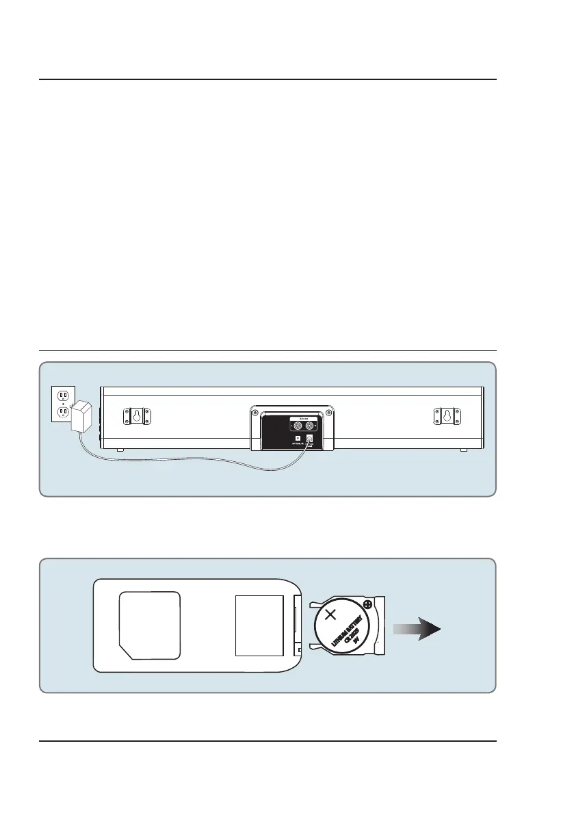 Plug the small end of the power cord into the DC Input on the back of the speaker, and the large plug into a