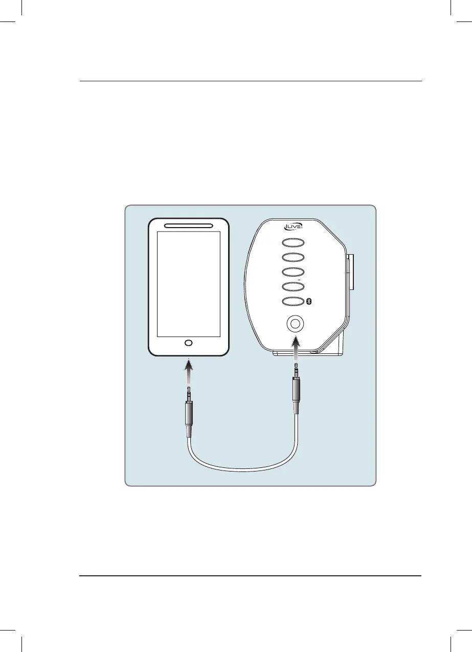 1. Plug one end of a 3.5 mm audio input cable into the Line In on the unit and plug the other end of the cable