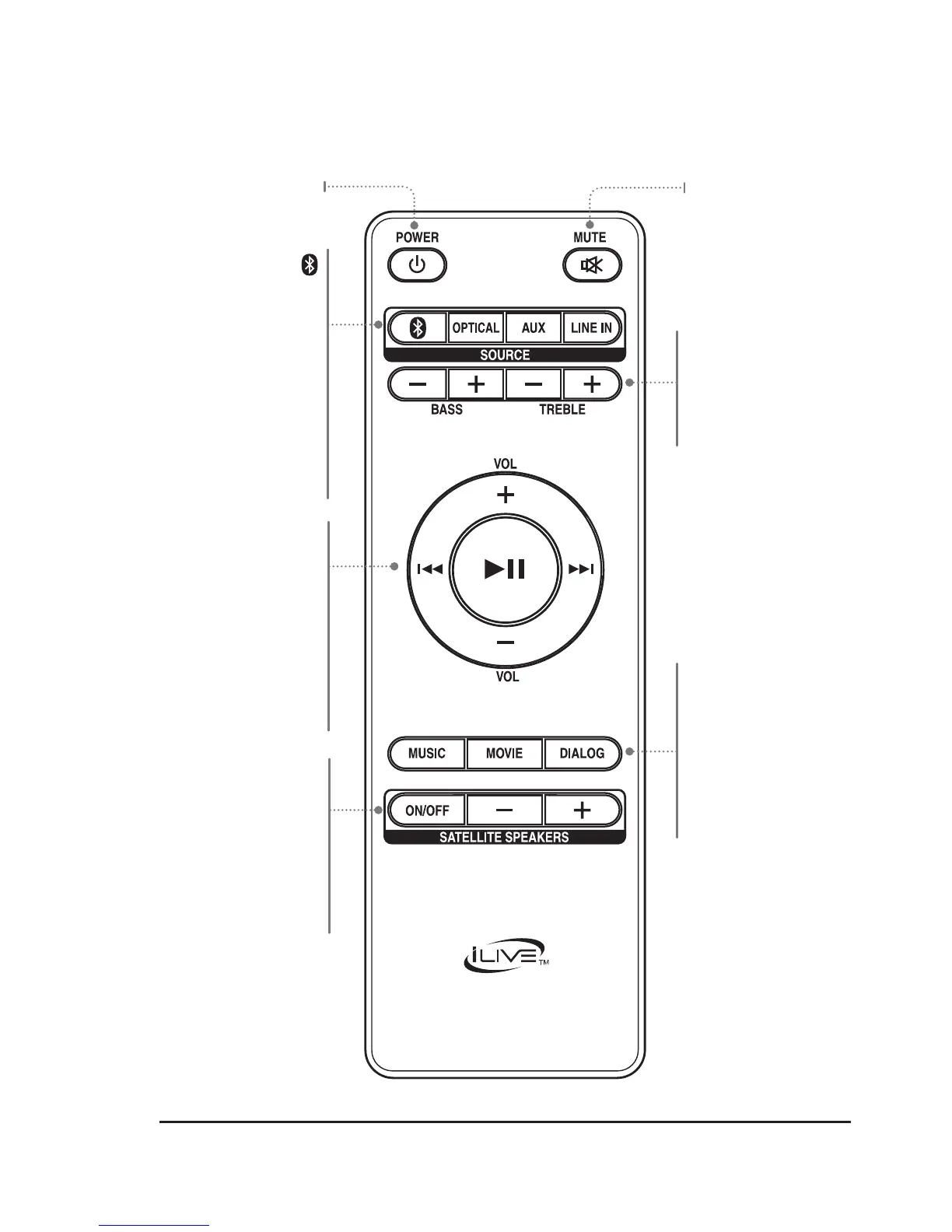 iLive ITB474B - Remote Control Operation; Power, Mute, and Volume; Source Selection and Playback; Audio Tuning and EQ