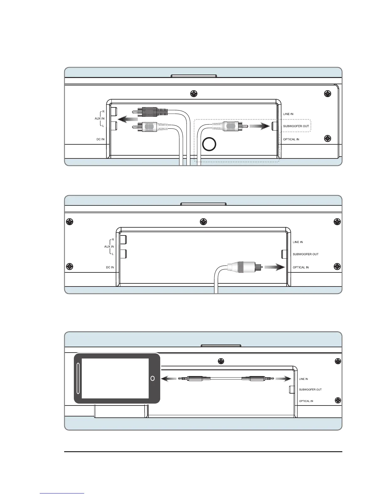 iLive ITB474B - Using the Optical Input - Rear View; Using the Line in - Side View