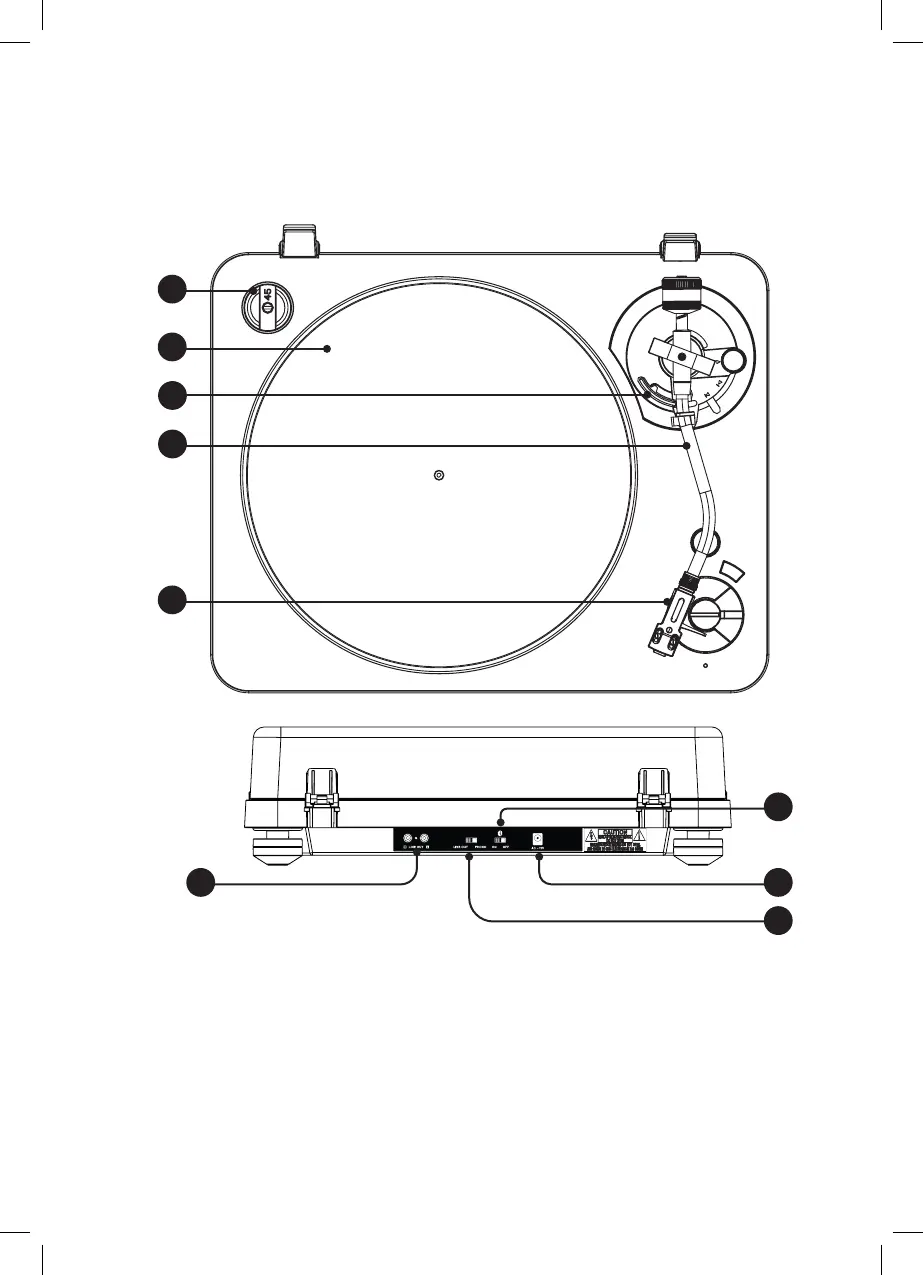 iLive ITTB2022B - Turntable Components Overview; Top View Identification; Rear View Connections