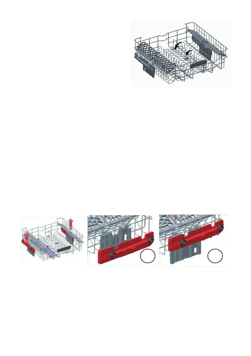 Üst sepetteki katlanabilir raflar; ten-