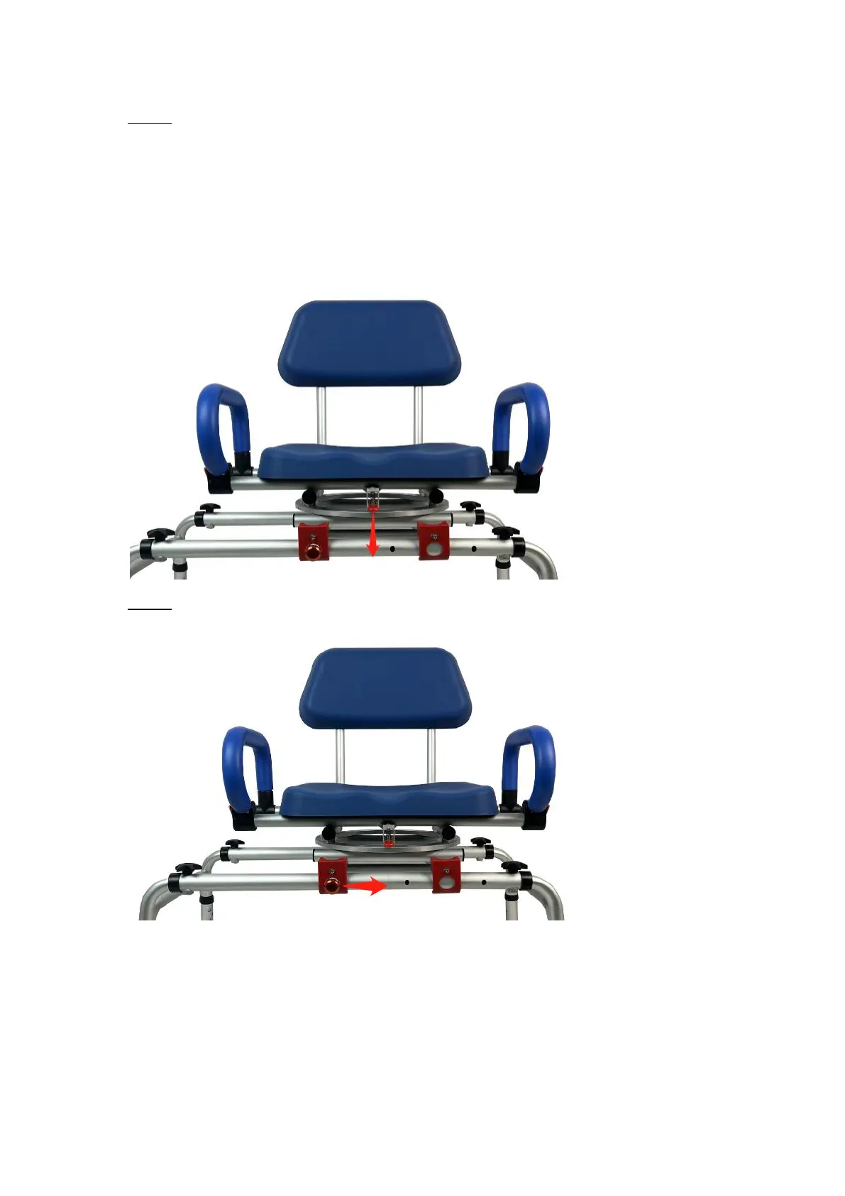 (1) Pulling the lever and turn the seat to face the user, then lock the seat into