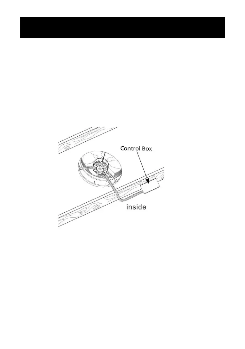 1. Mount the control box on the adjacent rafter.