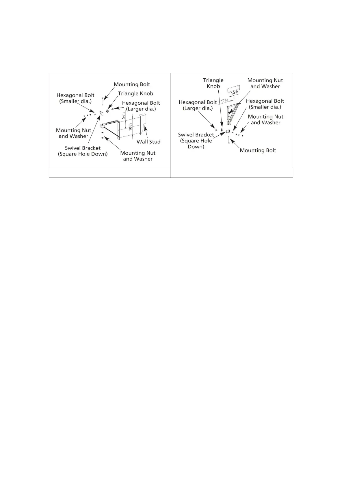 4. Assemble the swivel bracket as shown. The bracket has three holes; be