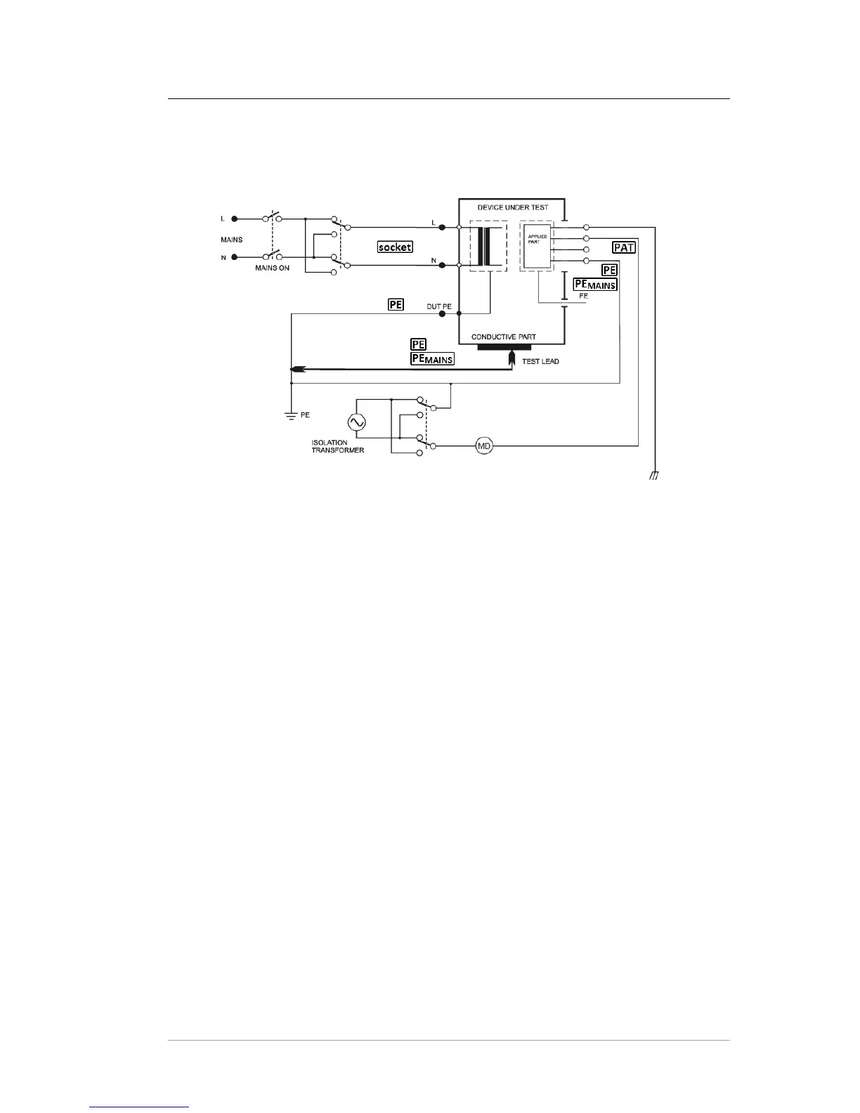 class II appliances), plug the test lead into the PE or PEMAINS terminals.
