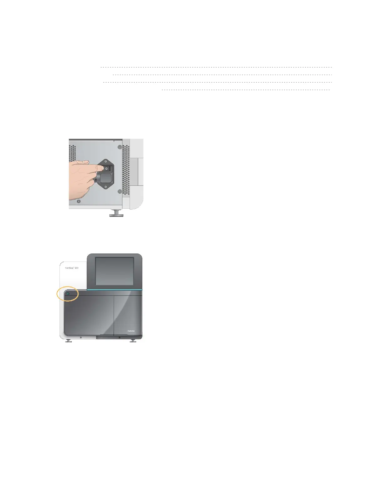 1 Press the power button above the reagent compartment. The power button turns on the instrument
