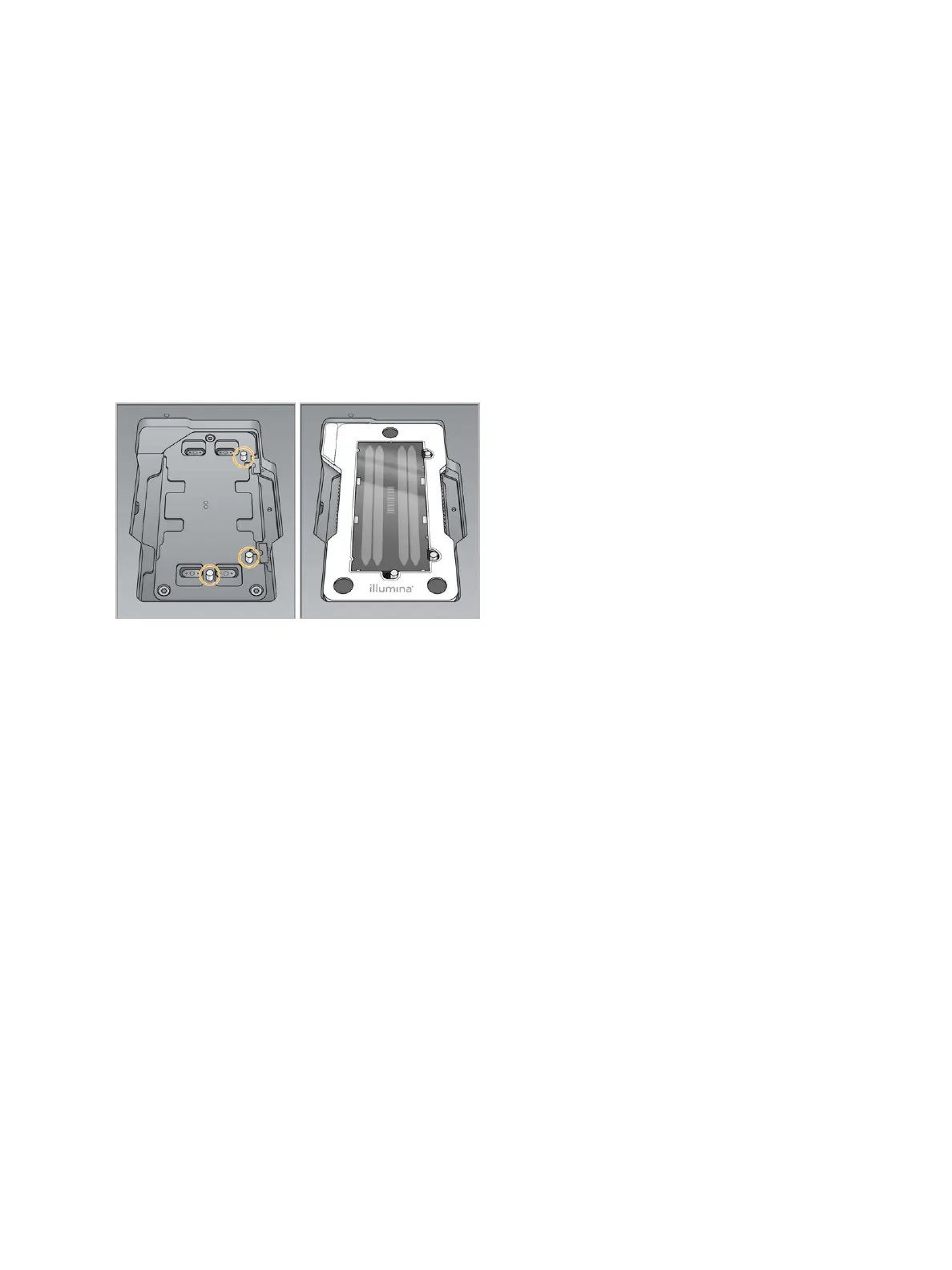 2 Align the flow cell over the alignment pins and place the flow cell on the stage.