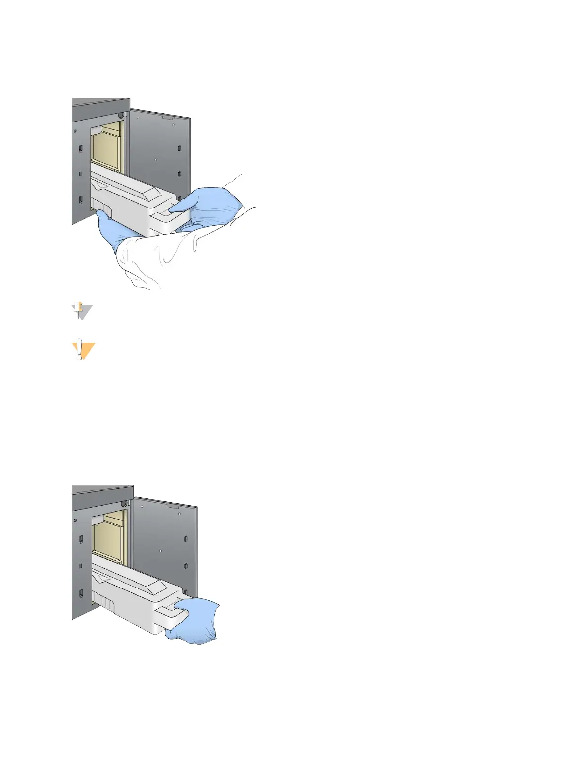 2 Slide the empty spent reagents container into the buffer compartment until it stops. An audible click