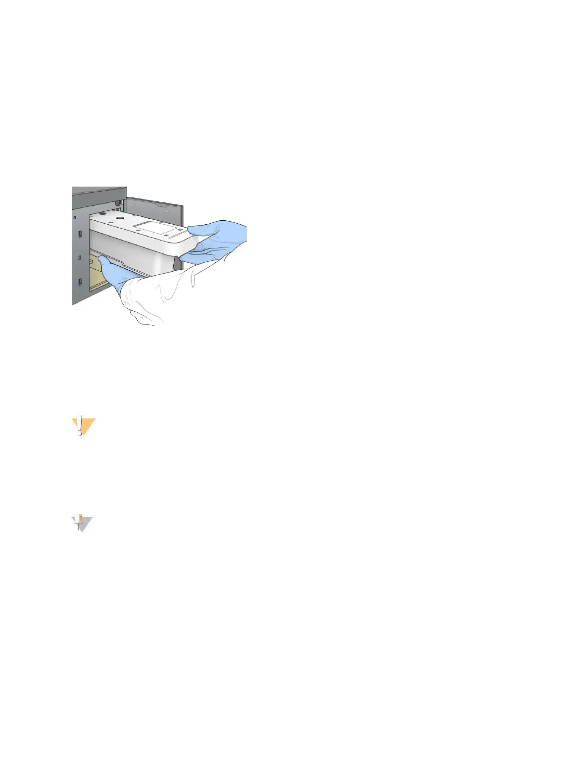 1 Remove the used reagent cartridge from the reagent compartment. Dispose of unused contents in