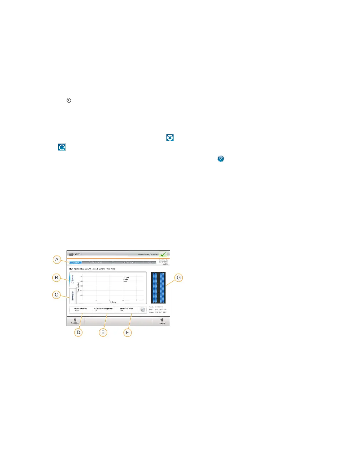 1 Monitor run progress, intensities, and quality scores as metrics appear on the screen.