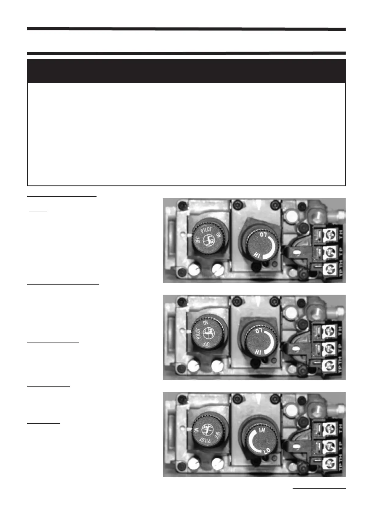 NEVER ATTEMPT TO LIGHT THE APPLIANCE IF YOU CAN SMELL GAS. IF IN DOUBT, CONTACT YOUR GAS