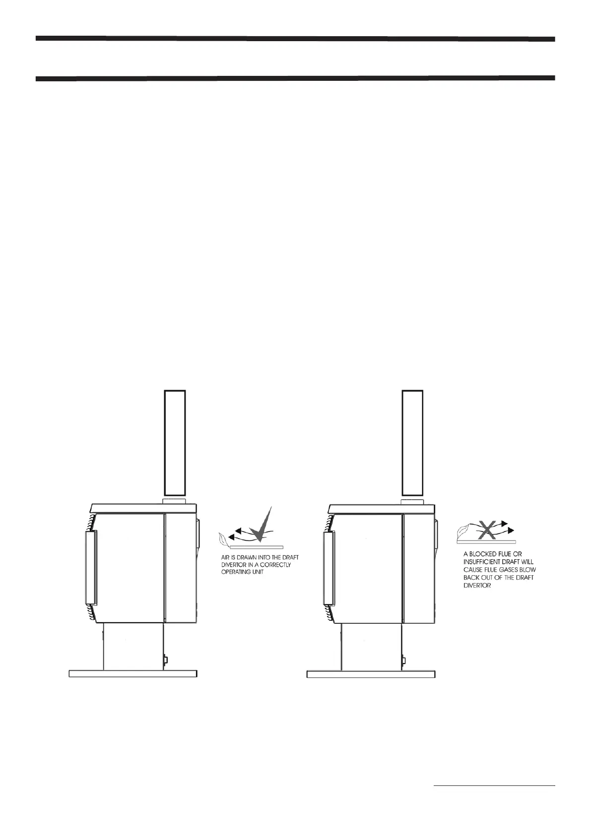 IF THE FLUE IS BLOCKED OR NOT PRODUCING SUFFICIENT DRAW, THE HEATER MUST NOT BE USED UNTIL THE