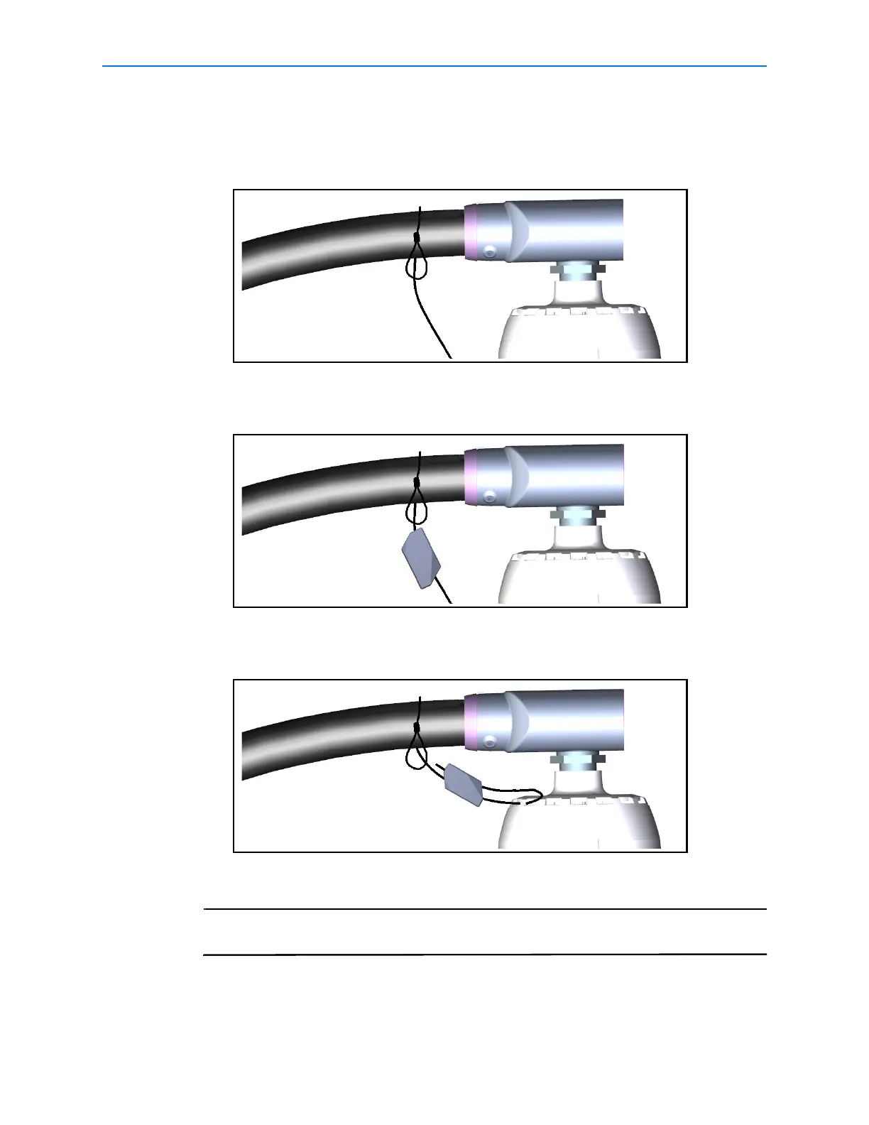 b Attach the lanyard lock by threading the end of the safety lanyard through the hole in