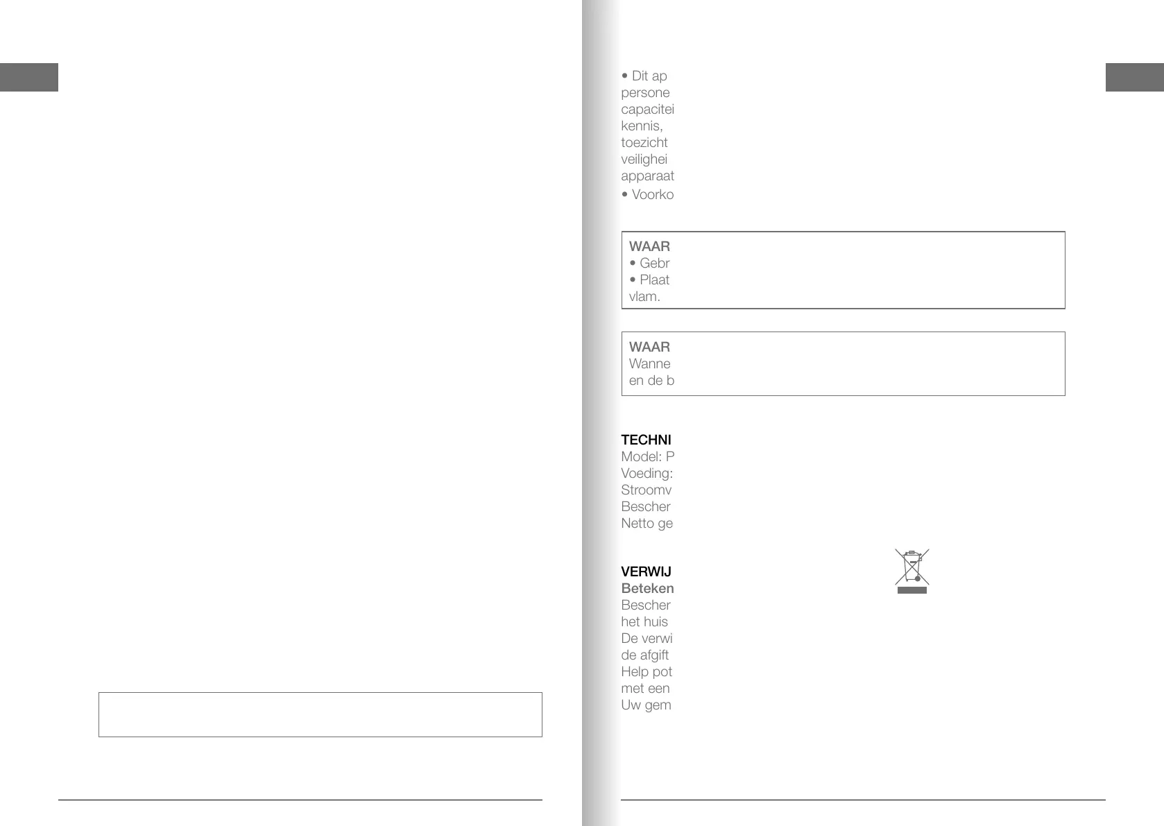 scherpe randen. Gebruik het apparaat niet met natte handen. Mocht het