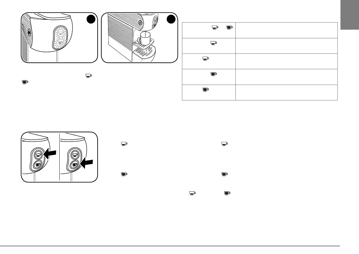 Hold tasten trykket. Maskinen vil begynde at brygge kaffen. Slip tasten , når den ønskede mængde er brygget. Maskinen vil nu holde op med