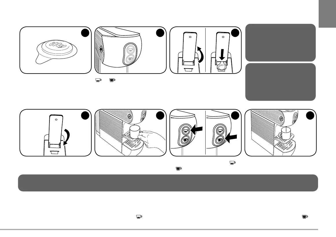 • illy E.S.E. Pod를 사용하여 커피 에스프레소를 내리려면 버튼을 누르십시오. illy E.S.E. Pod를 사용하여 커피 에스프레소 룽고를 내리려면 버튼