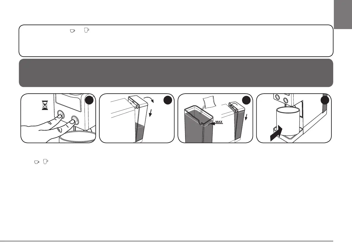 N.B.: If the operations are not carried out according to the indicated time, the machine will not start the descaling process. In this case, turn off the machine and repeat