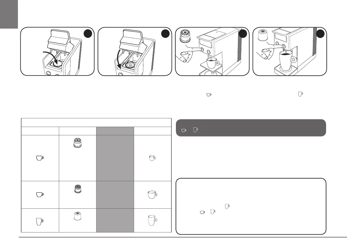 Avec le levier ouvert, appuyer pendant 1-2 sec sur l'une des deux touches café pour