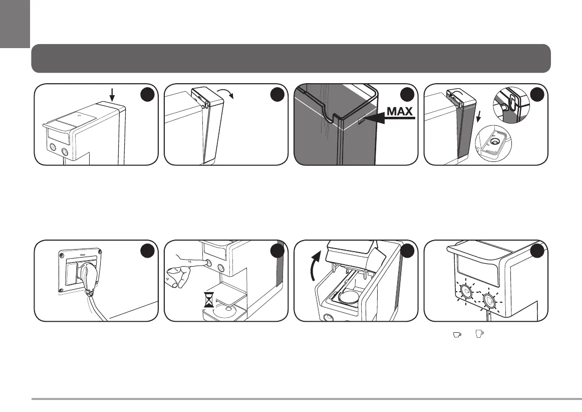 Die Maschine an die Steckdose anschließen. Eine der beiden Kaffeeausgabetasten