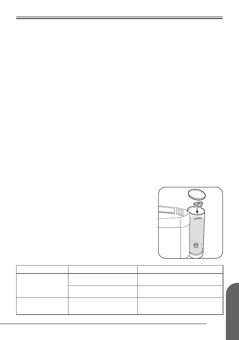 • Γεμίστε τη δεξαμενή νερού με το διάλυμα αφαίρεσης αλάτων, ακολουθώντας τις οδηγίες