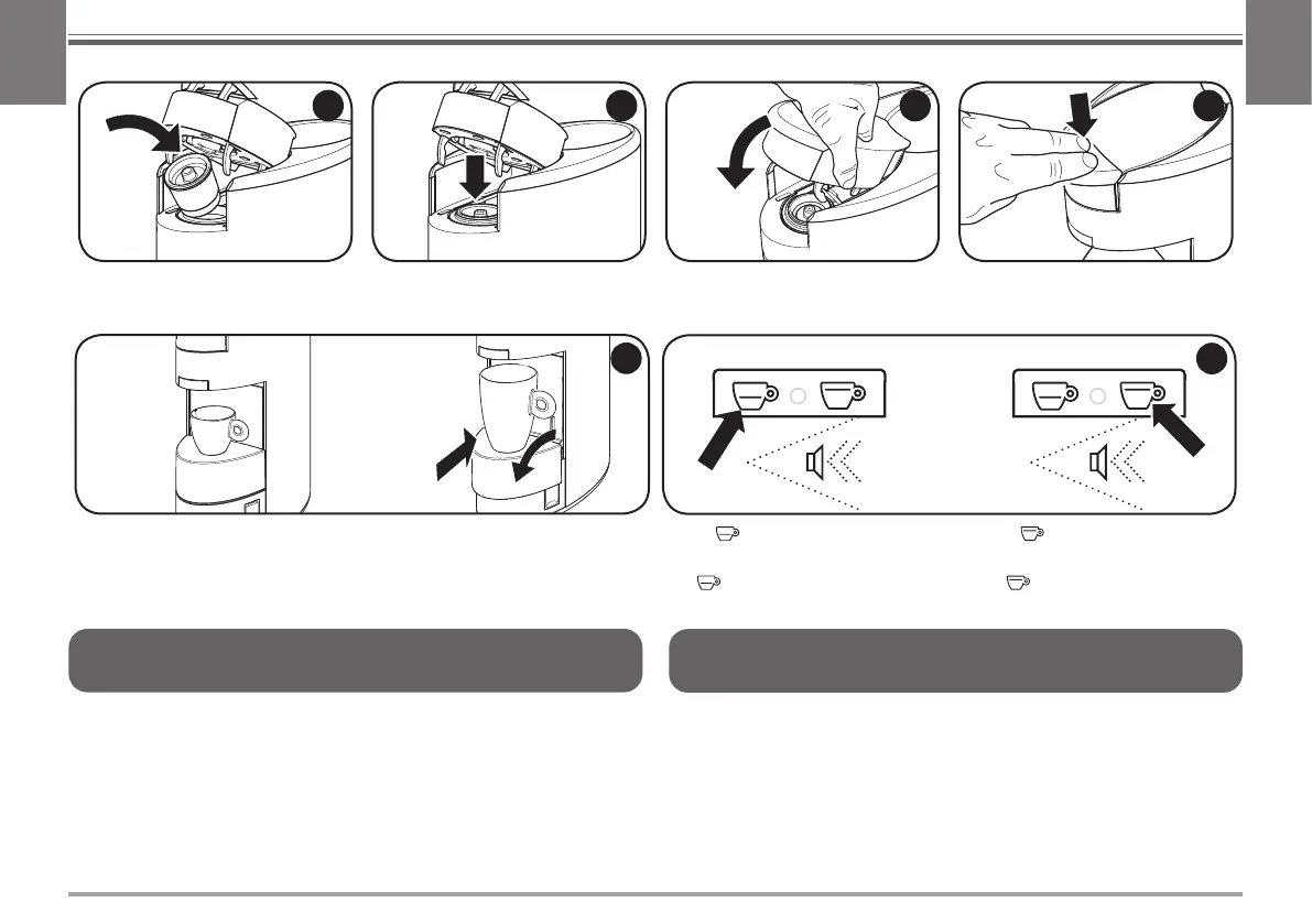 Inserire la capsula. Abbassare la parte mobile. Bloccare abbassando la leva.