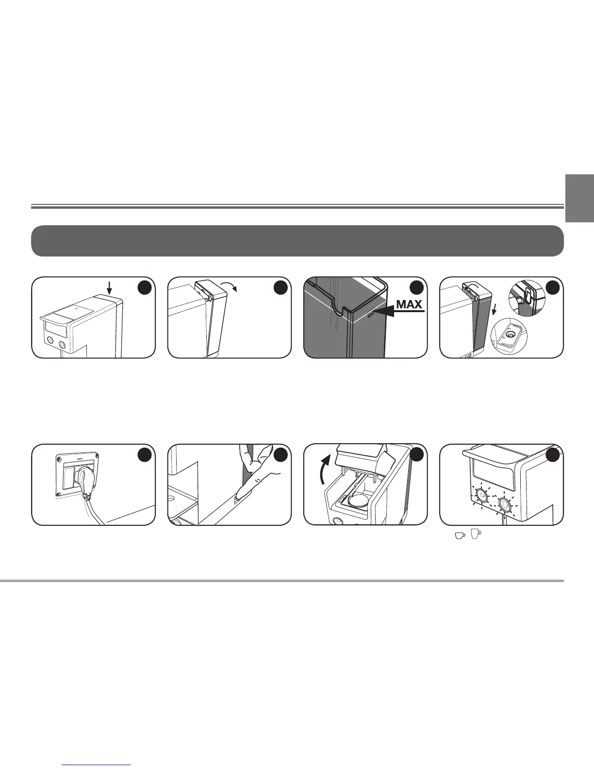 Al primo utilizzo, oppure se la macchina è rimasta spenta per un periodo prolungato, lavare il serbatoio prima di riempirlo, é inoltre consigliato erogare almeno 3 tazze mug d’acqua,