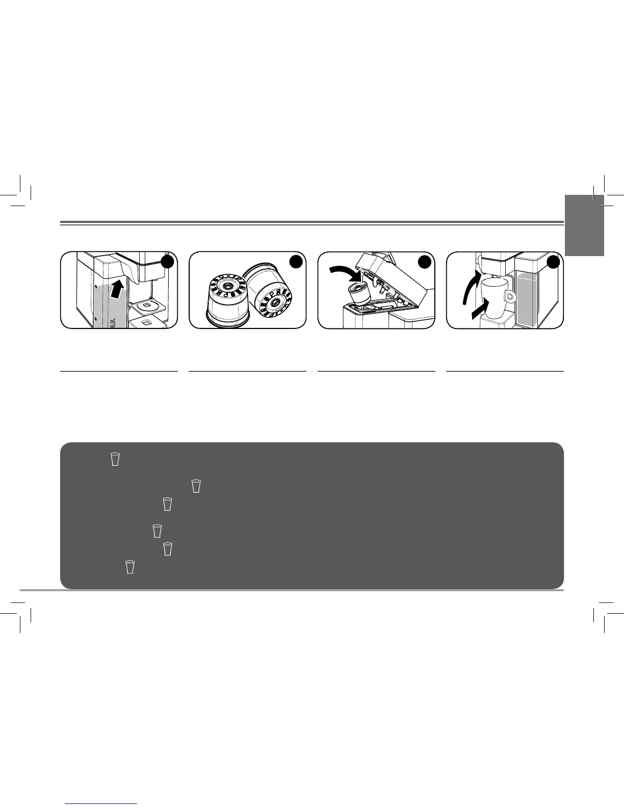Introduza a cápsula. Levante o suporte e coloque uma chávena grande