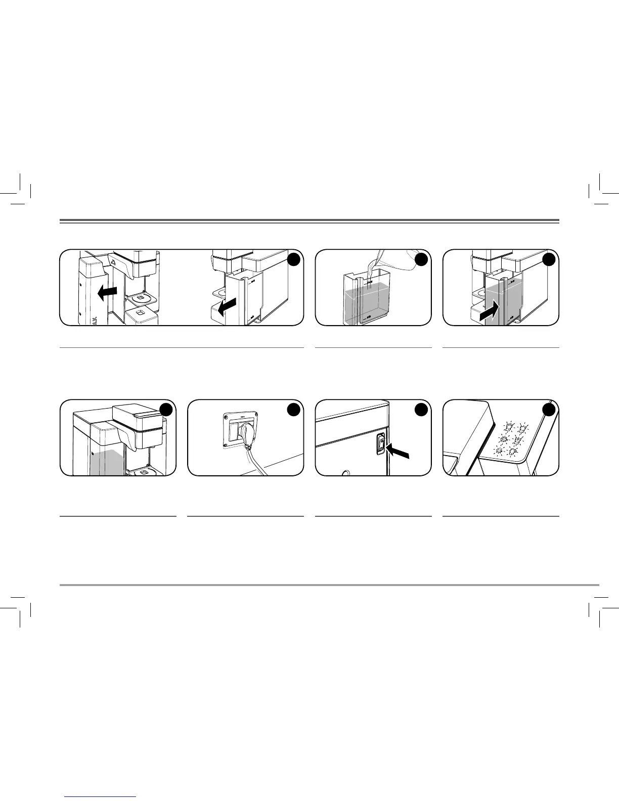 Remove the milk and water tanks and wash them thoroughly before use. Fill the water tank with fresh drinking water up
