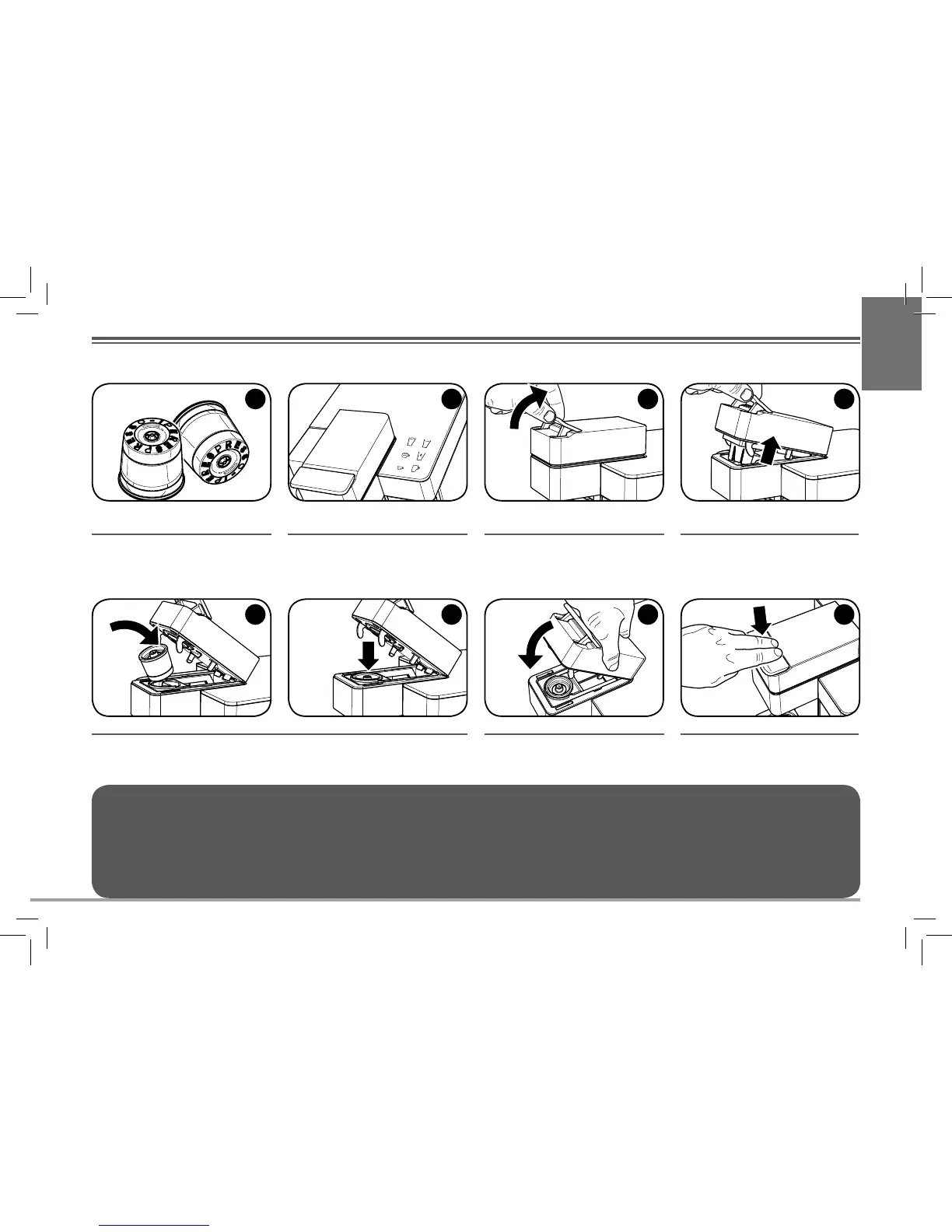 Inserire la capsula. Abbassare la parte mobile. Bloccare abbassando la leva.