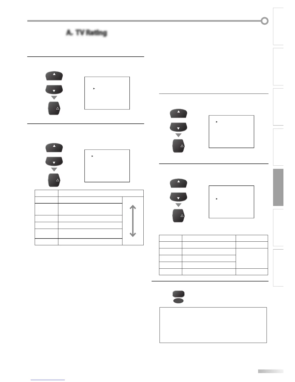 Use [CH K /L] to select “TV RATING“,