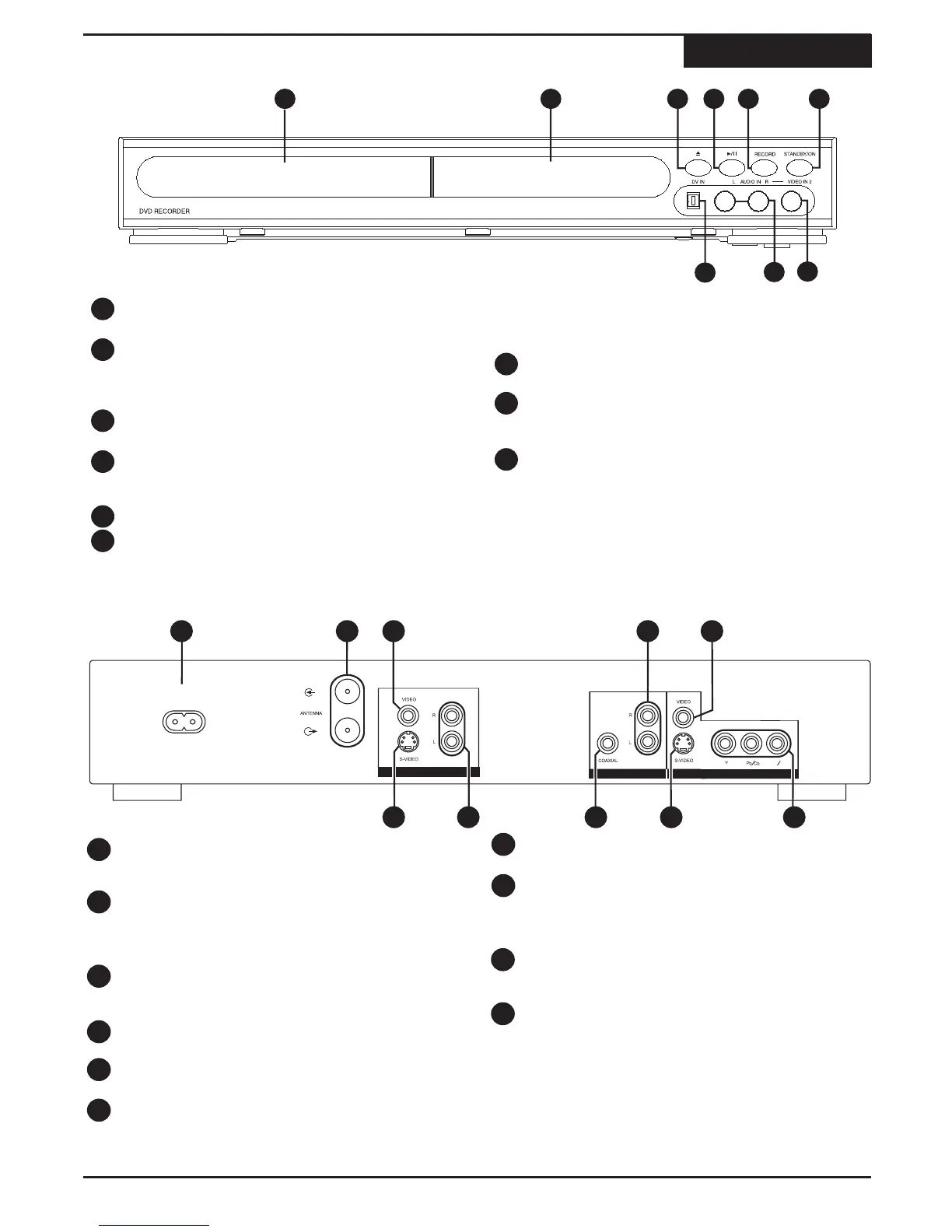 OPEN/CLOSE - Press to open or close the disc Inputs for recording. These inputs are shared with