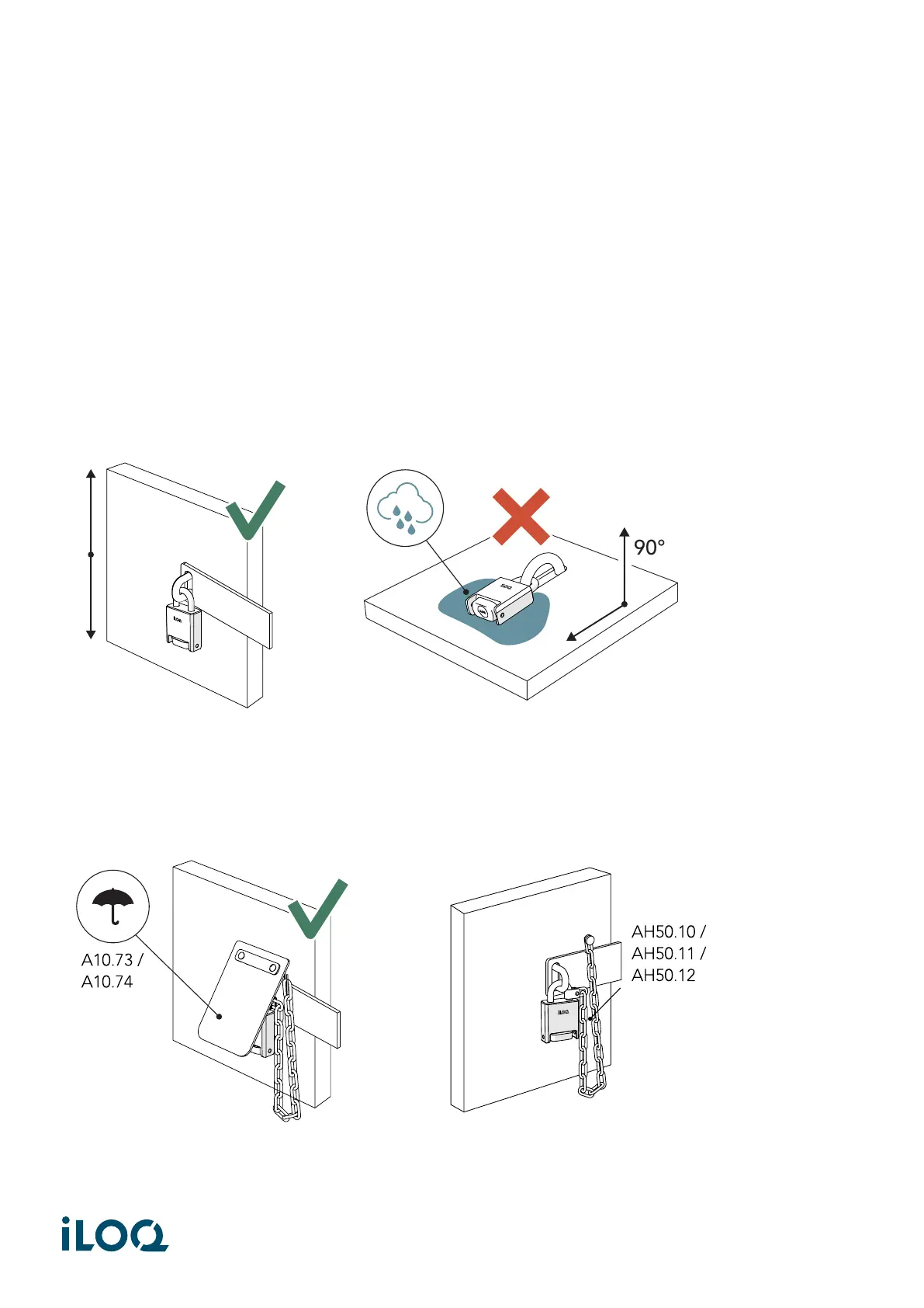 • Use a rain cover (iLOQ A10.73 or A10.74) to ensure the longevity and functionality of the padlocks.