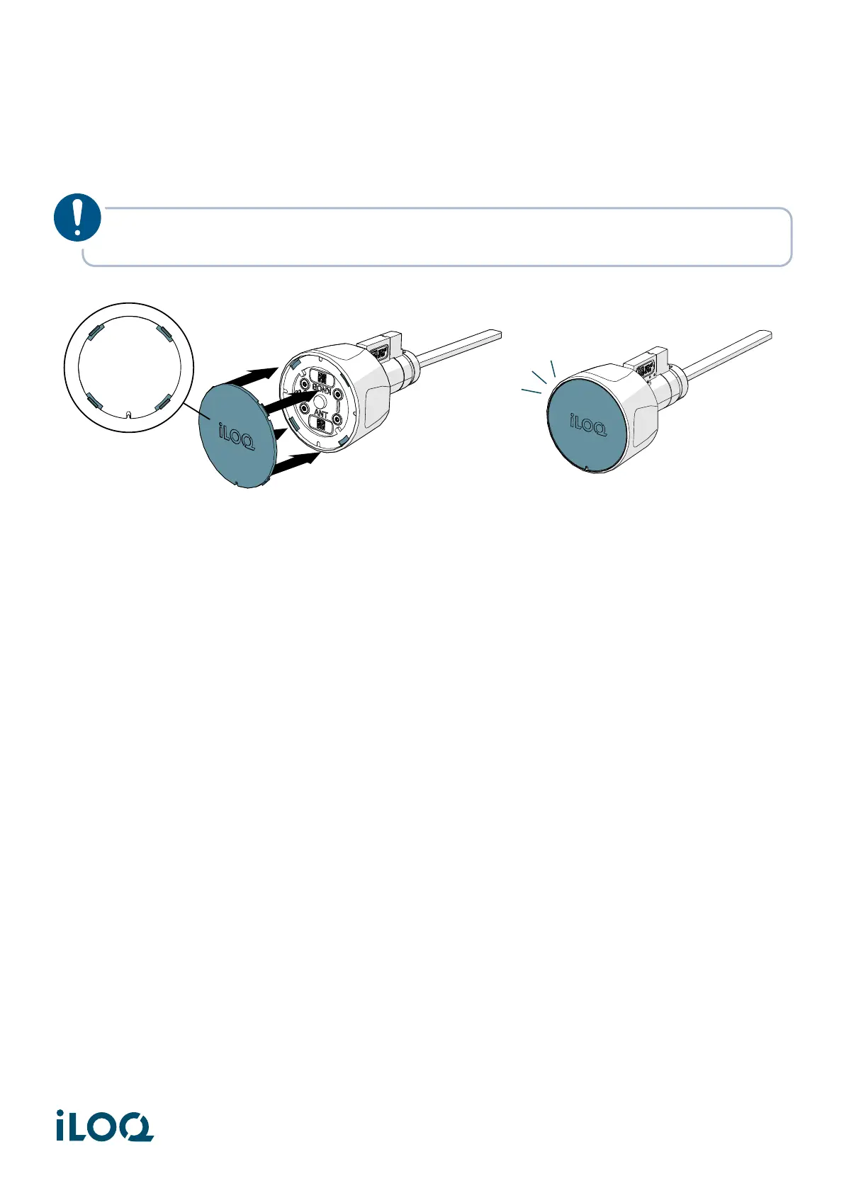 The iLOQ logo on the cap should be horizontal when the cylinder is locked.