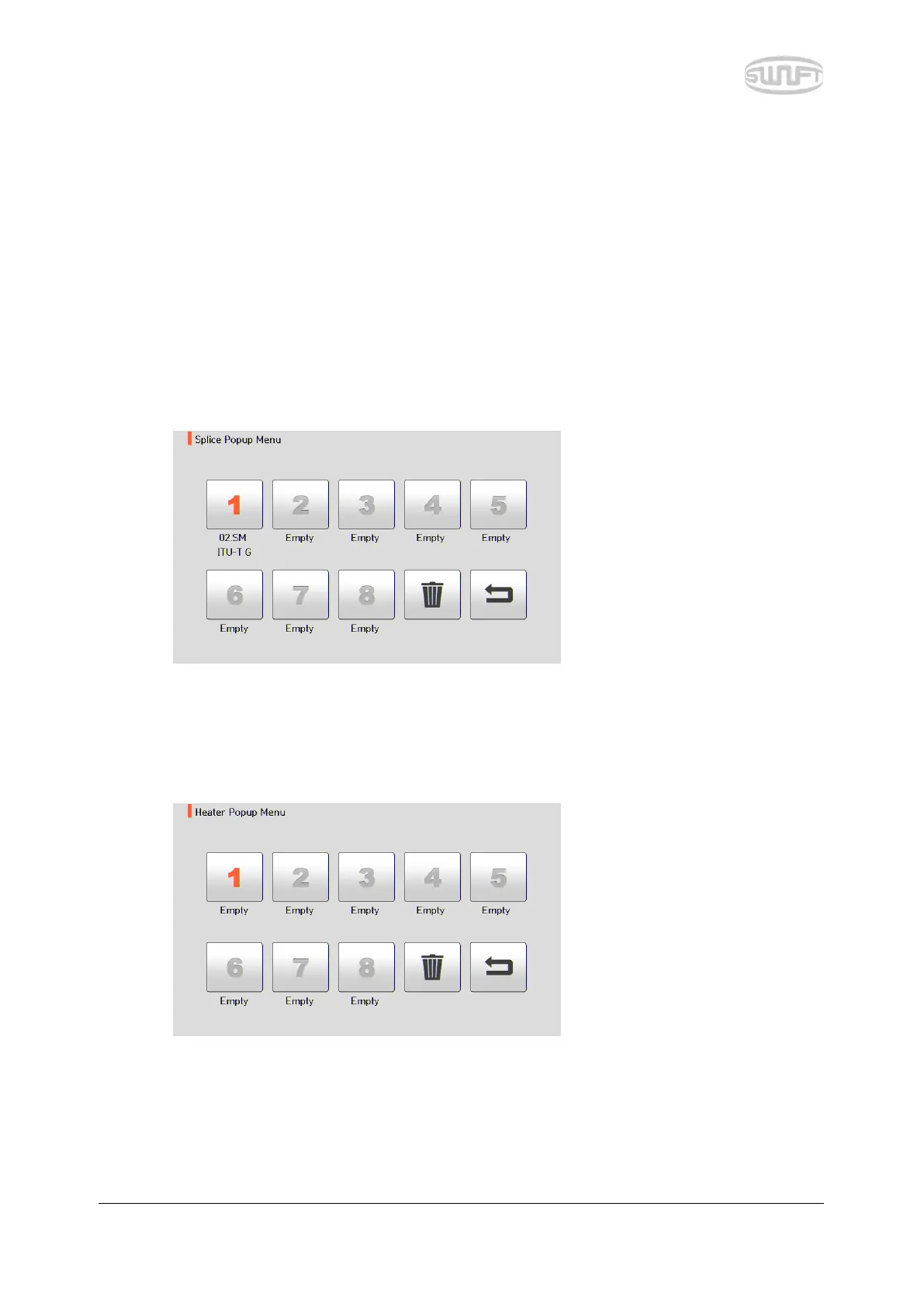 easy and quick access to splice mode and heater mode. User can access popup menu in various