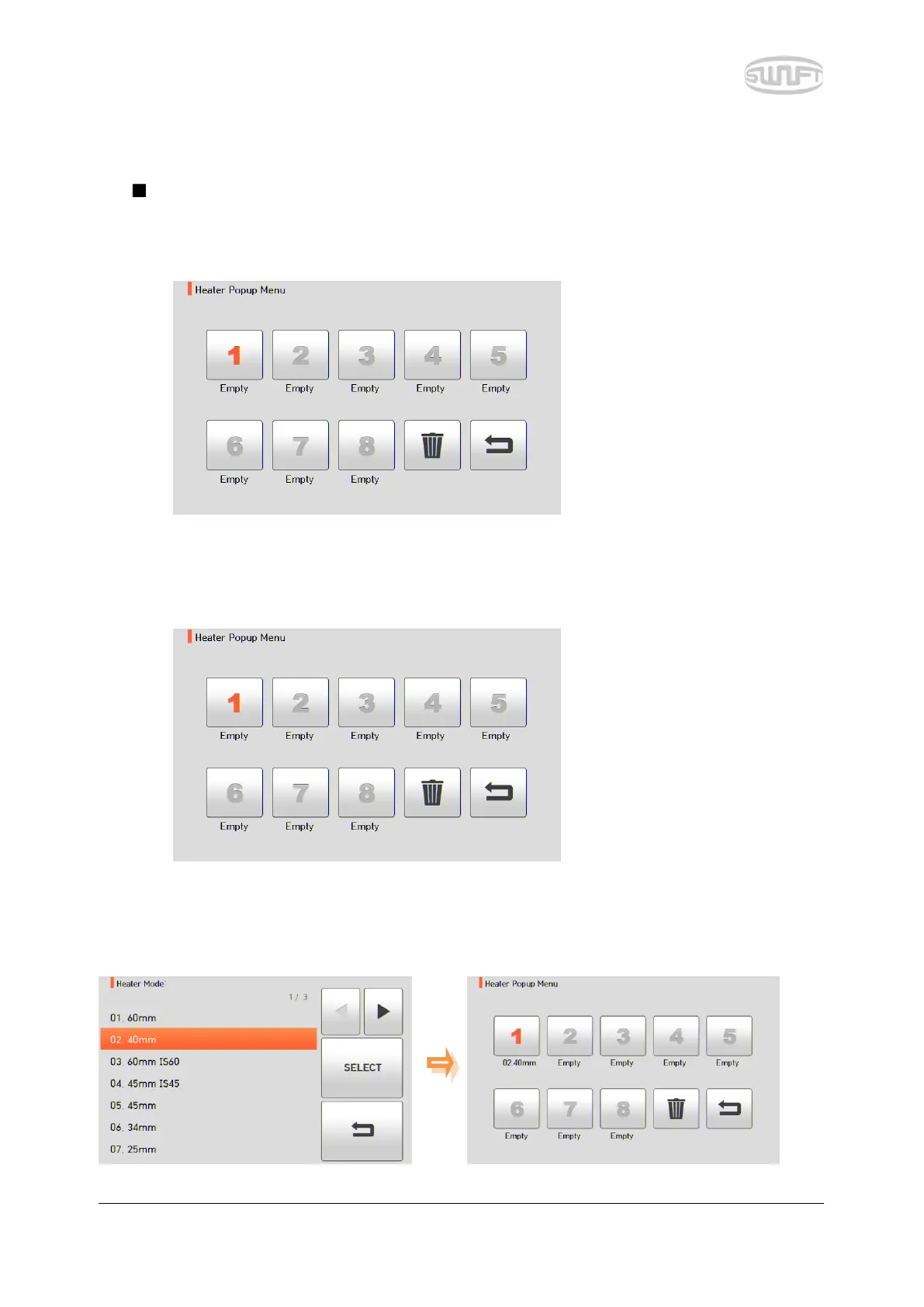i. Import heater popup menu by pressing “HEATER” icon on screen of initial state.