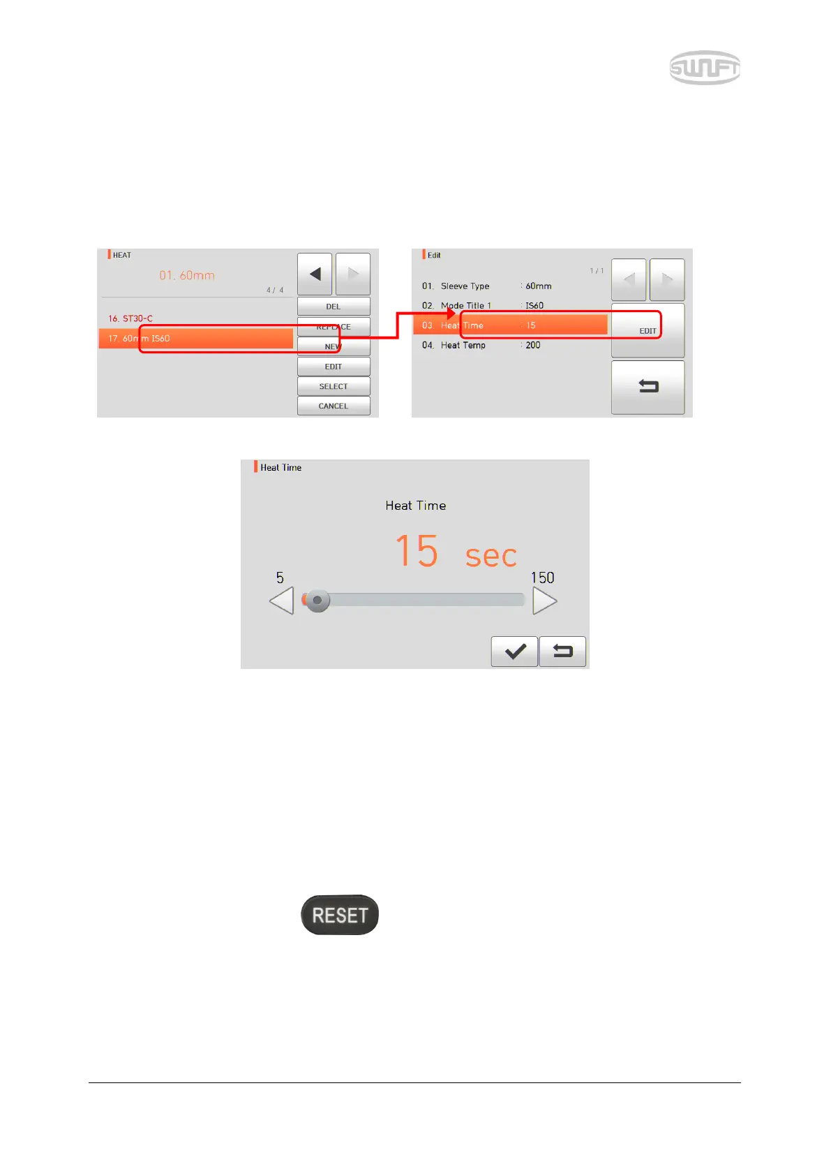 Select a heater mode to edit by touch and touch “EDIT” icon and different set values of the